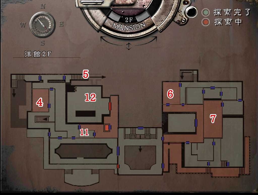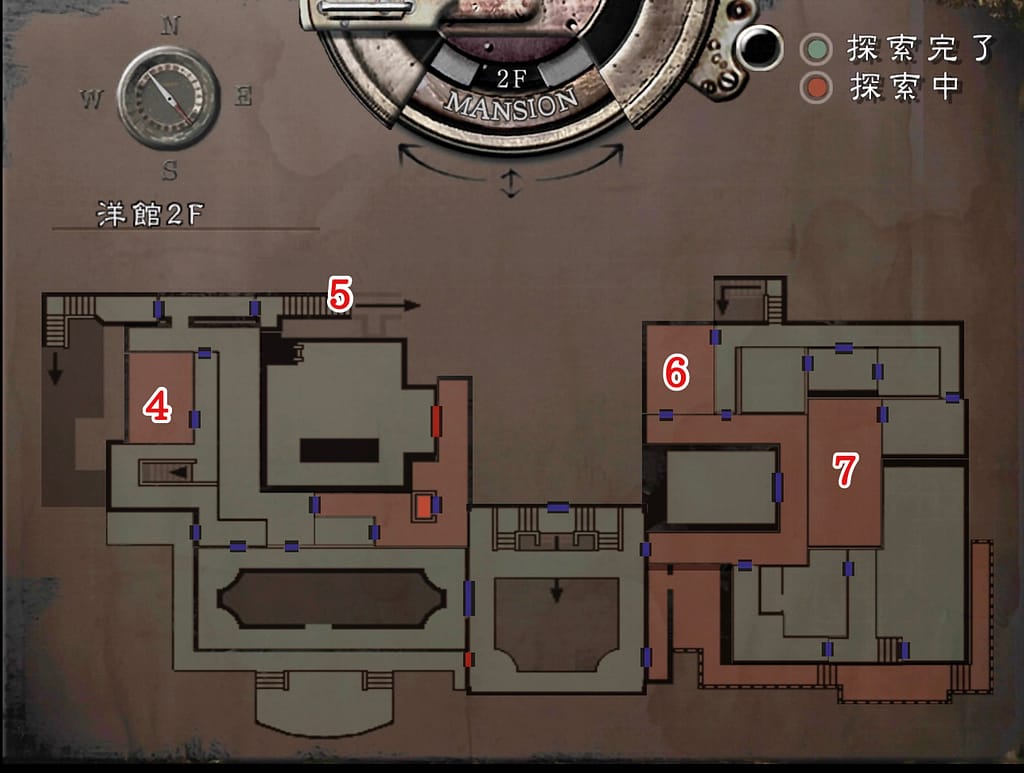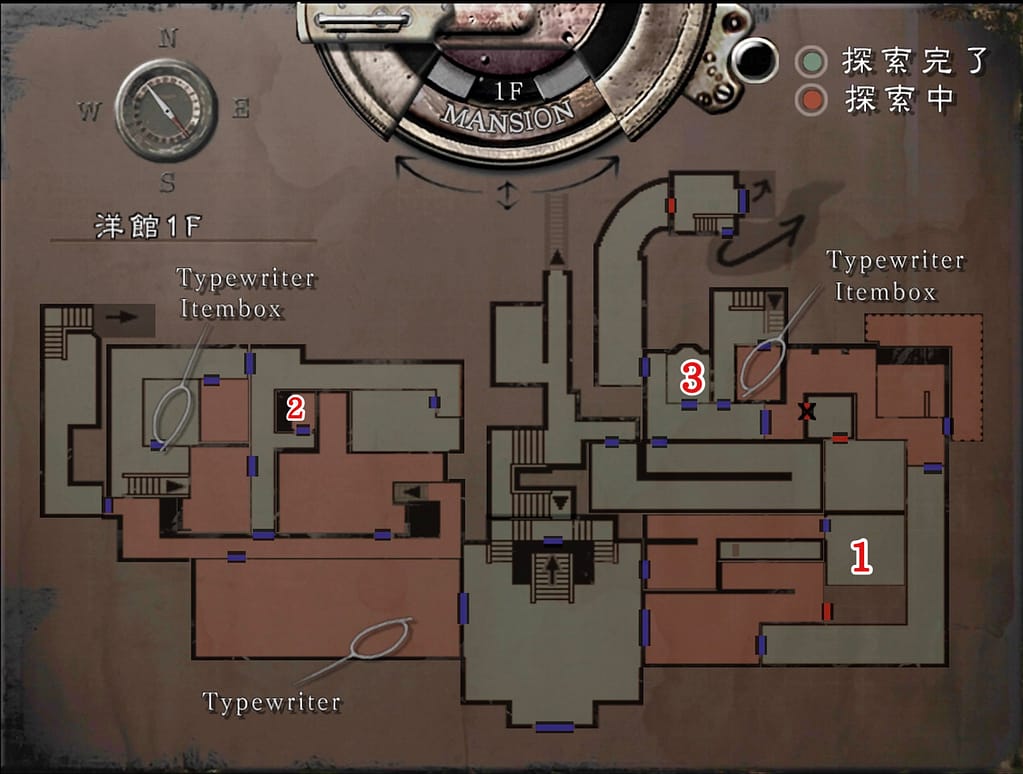 - 紋章の入ったカギを使って、(3)スペンサー郷の書斎に入る。入るとレベッカの悲鳴が聞こえるのでアイテムをすぐに拾う。