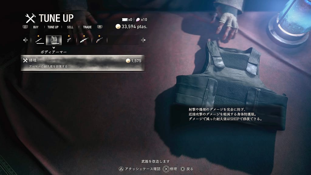 よって、武器商人を見かけたら、ボディアーマーを耐えず修理することをオススメする!これだけで難易度的にも精神的にもめちゃくちゃ敷居が下がるから!😳
