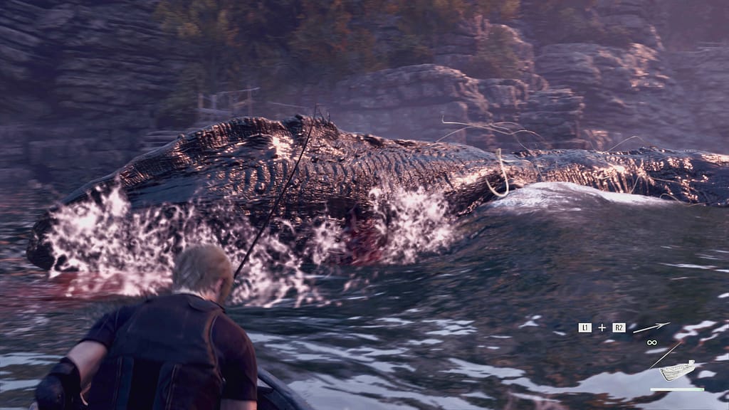 オリジナル版では攻撃をレオン自身が受けるのだが、なんと今作では被ダメージの対象がボートになるため、レオンがダメージを負うことが一切無いんすわ!!🤤