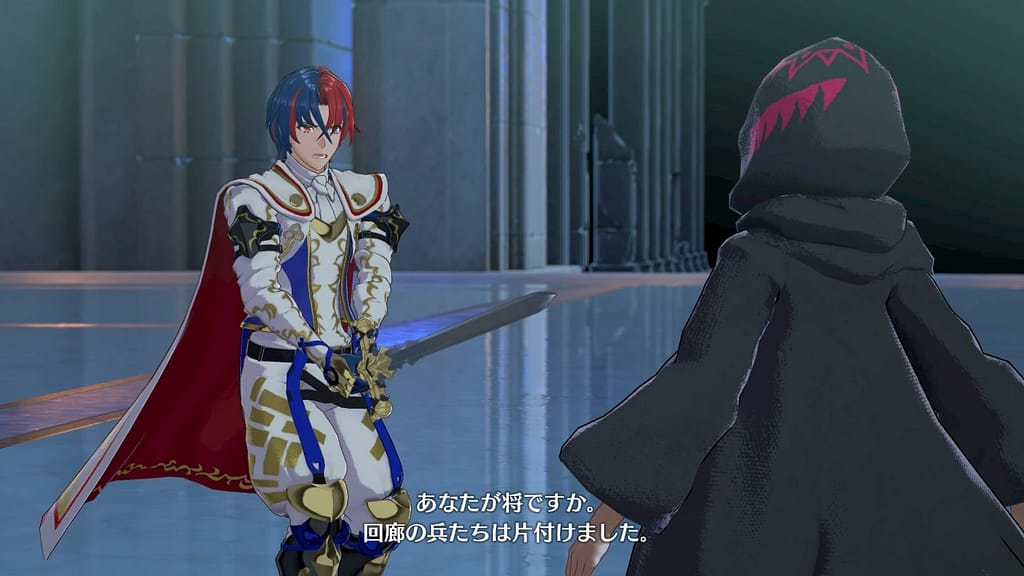 リュールたちは急いで指輪の間へ駆け込む。指輪の間には数多の台座があり、それぞれに紋章士の指輪が安置されていた。ところが部屋の中央には黒ずくめのフードを被った謎の人物が立っていた。