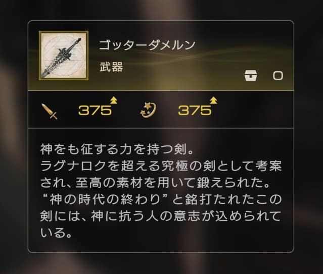 その中でも『ゴッターダメルン』は、攻撃力・ウィルが共に375と最強クラスの性能を誇る。