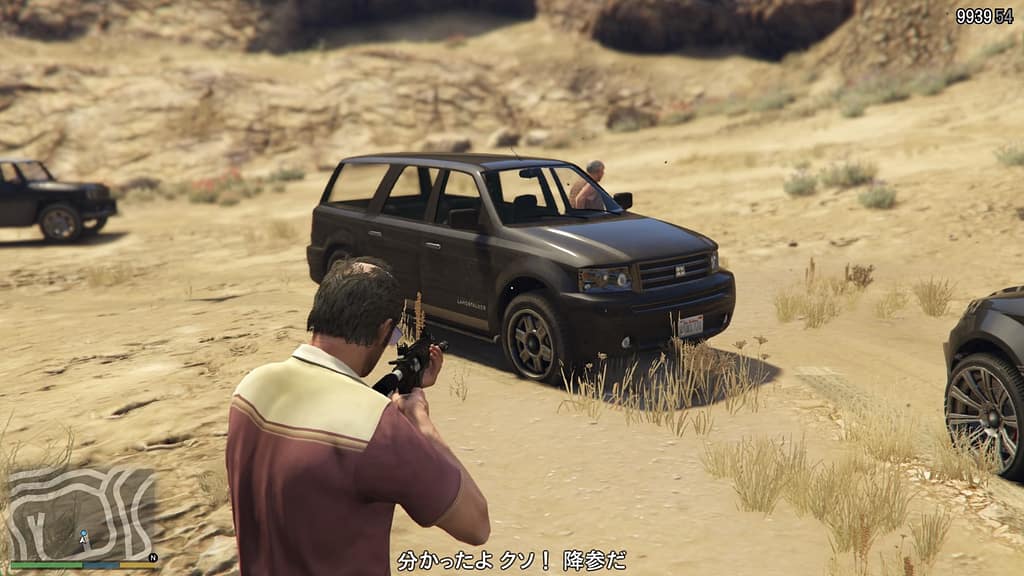 車に威嚇射撃をしていると意外とすんなりと降参して車から降りてくる。