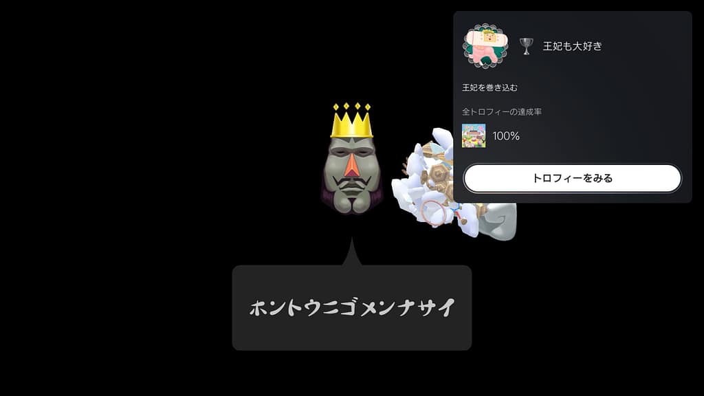 すると、トロフィー『王様も大好き』がアンロックされる。