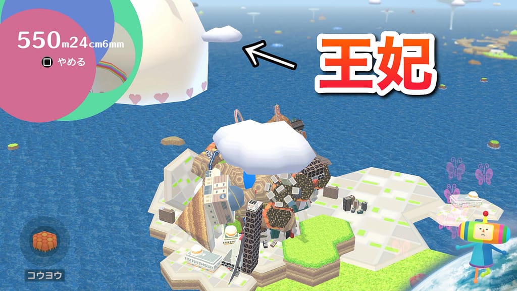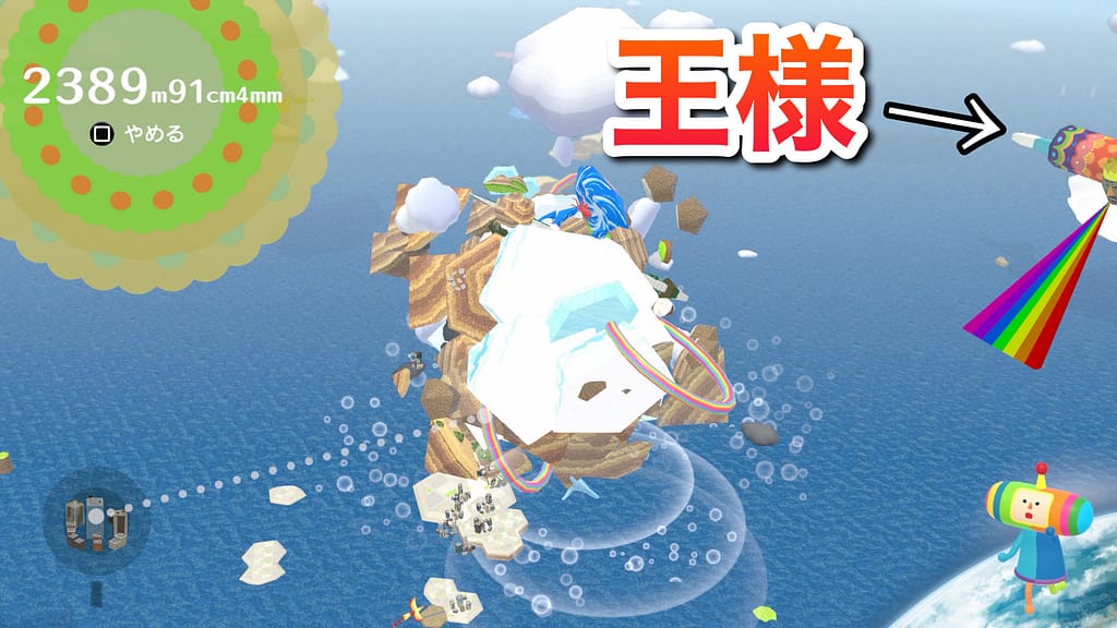 要注意なのが、3300m以下で王に当たると吹き飛ばされてゲームオーバーになってしまう恐れがあるので、とにかく王様から逃げながら目標サイズまで玉を大きくして行こう!!