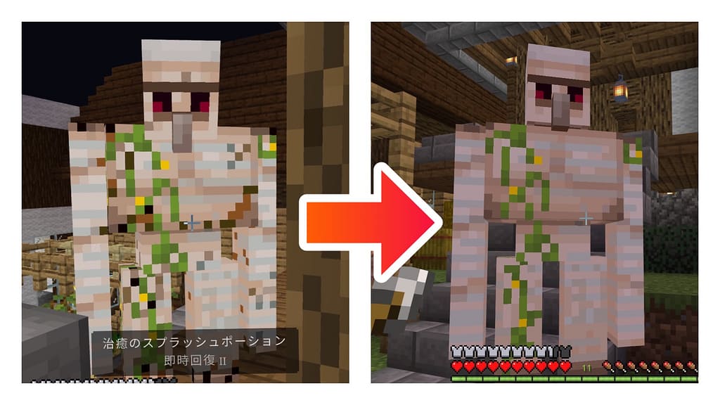 アイアンゴーレムに治癒のスプラッシュポーションを使う