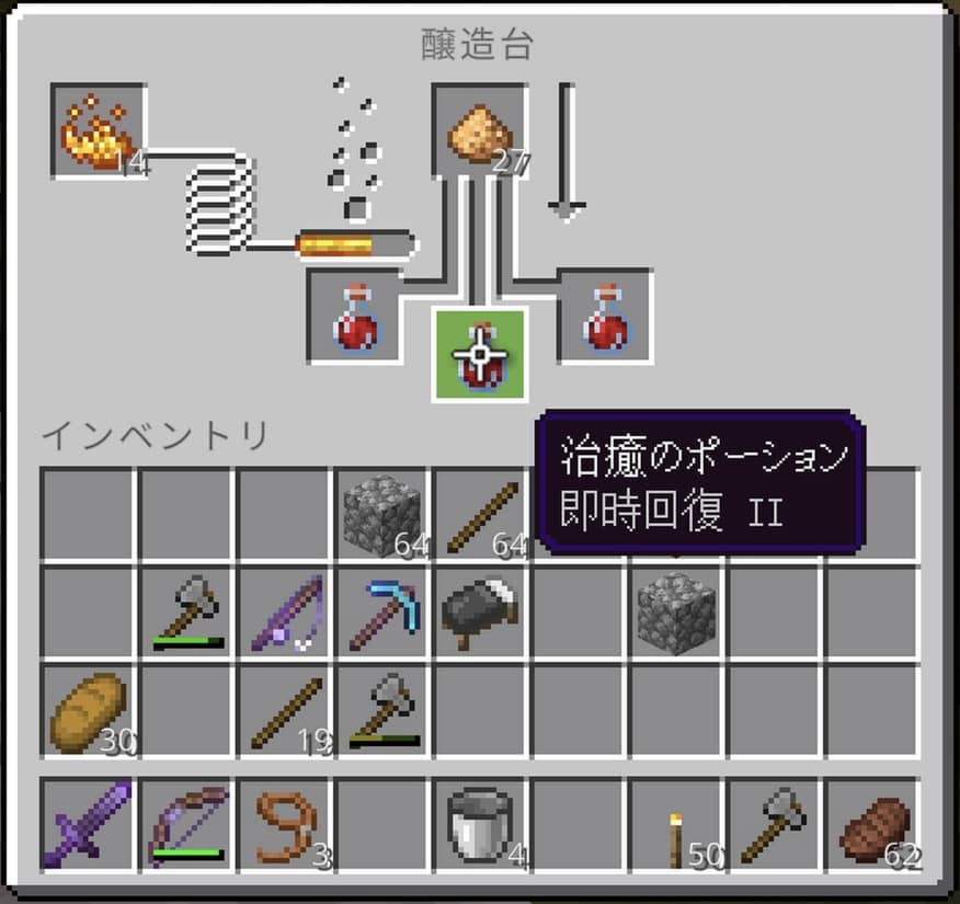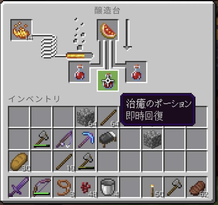 醸造台が必要だし、完成までの過程もそこそこ長いので大変だけど、ゴーレムを治療できるなら安いもんである!😳