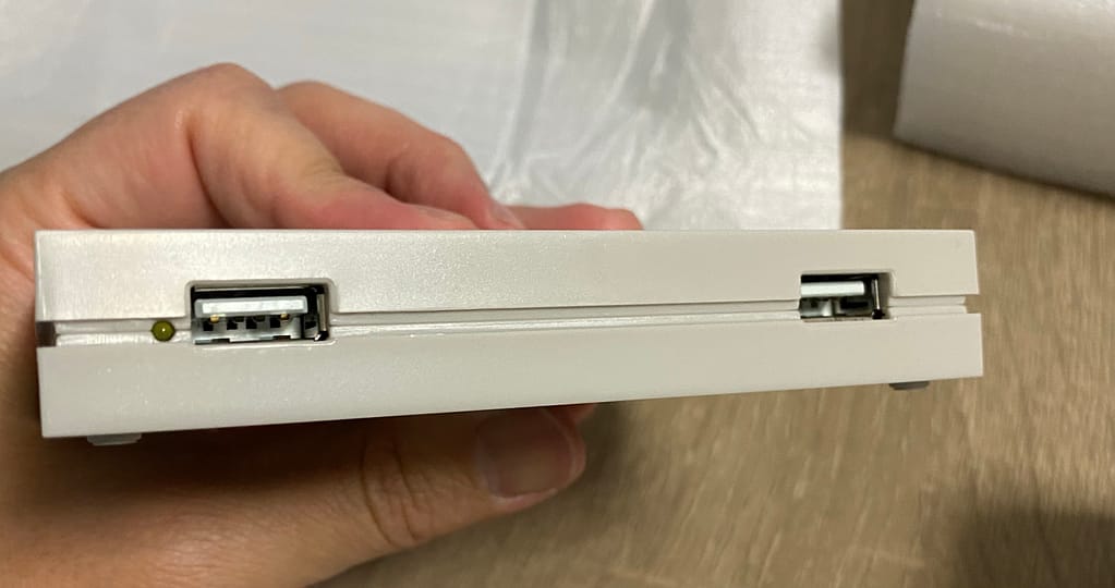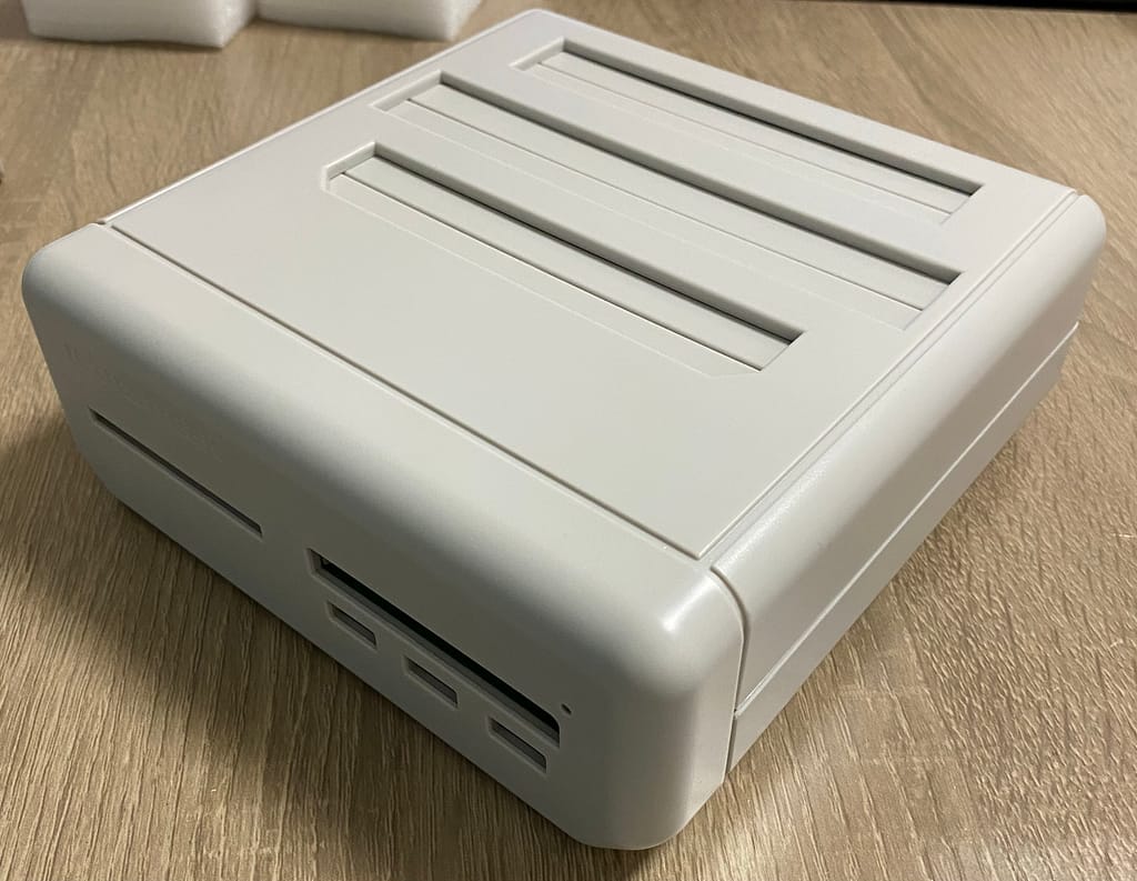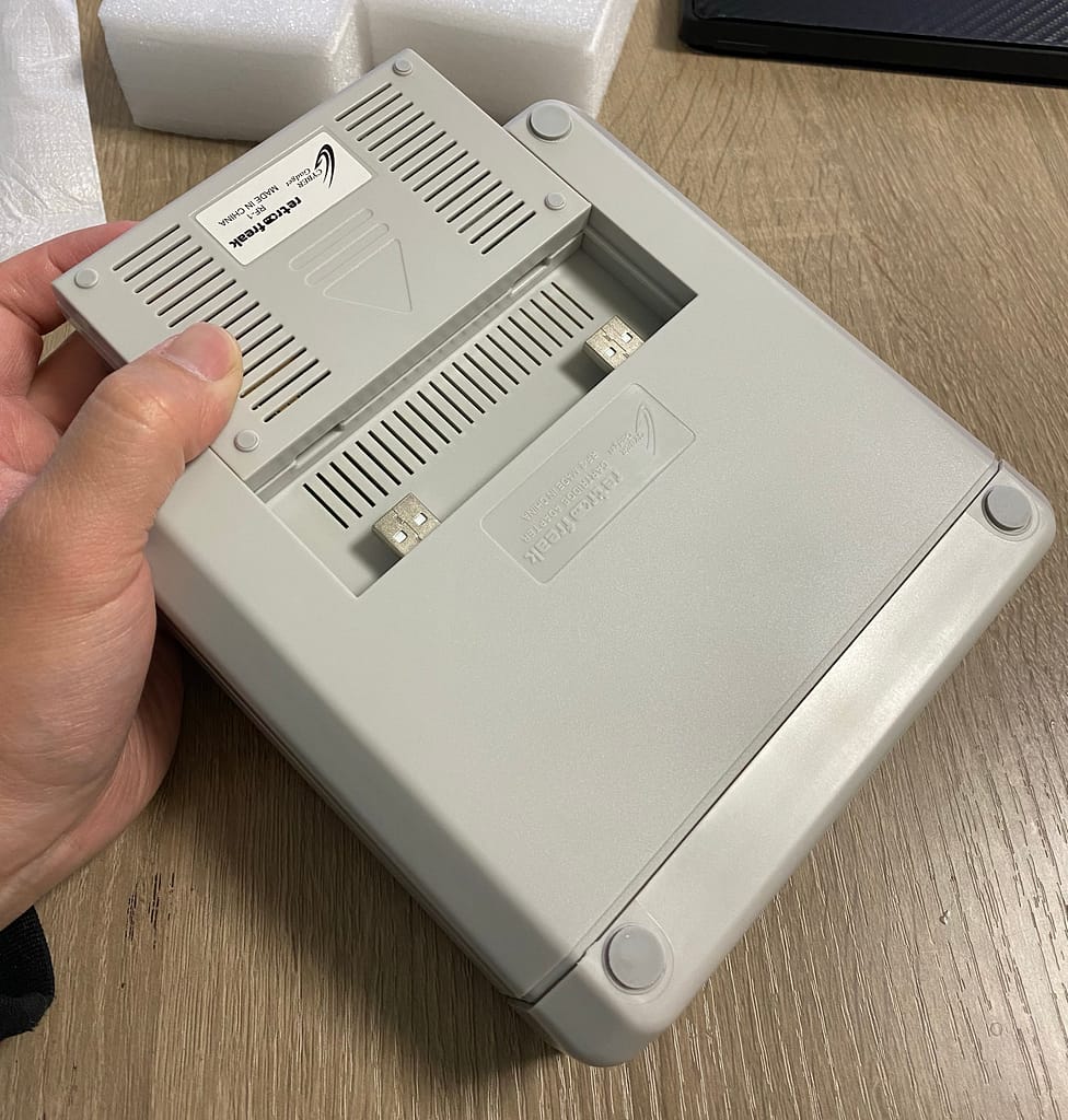 この小さくてちゃっちいプラスチックでできたものがレトロフリーク本体!!!基本的にこれだけで遊ぶ感じ。