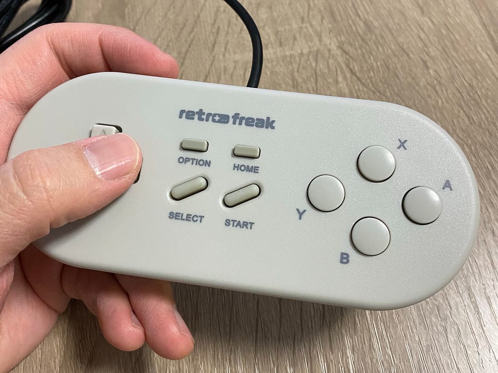 レトロフリークのHOMEに戻るためのボタンとかが追加されただけで、ほとんどはスーファミのコントローラーよな。