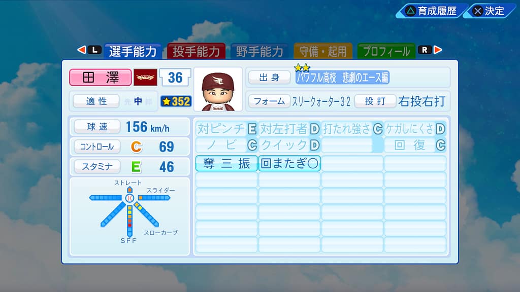 特筆する点は特に無くて、本当はあまり投げることがないスライダーを付ける気が無かったんだけど、結局付けちゃった😜