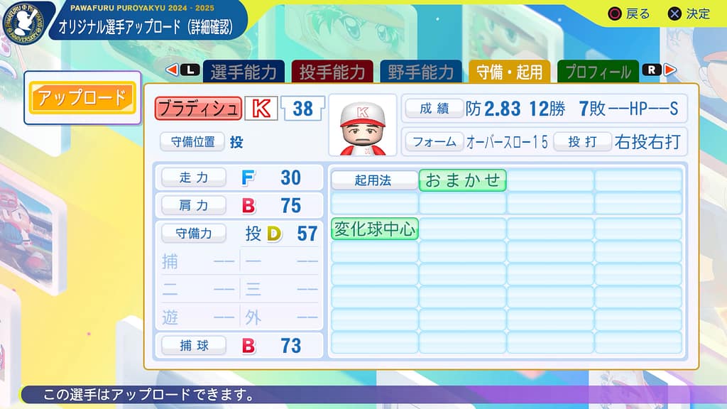 今回は2023年にオリオールズの地区優勝に大きく貢献した若きエース・ブラディッシュを再現!