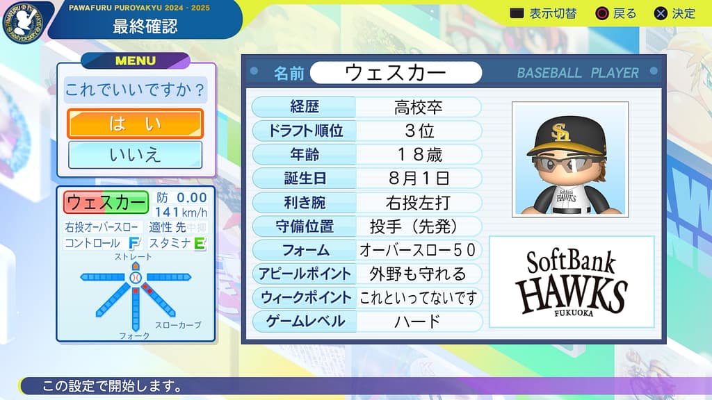 この低能力かつ難易度ハードで、オープン戦無失点ってのは完全にまぐれよ😂😂😂