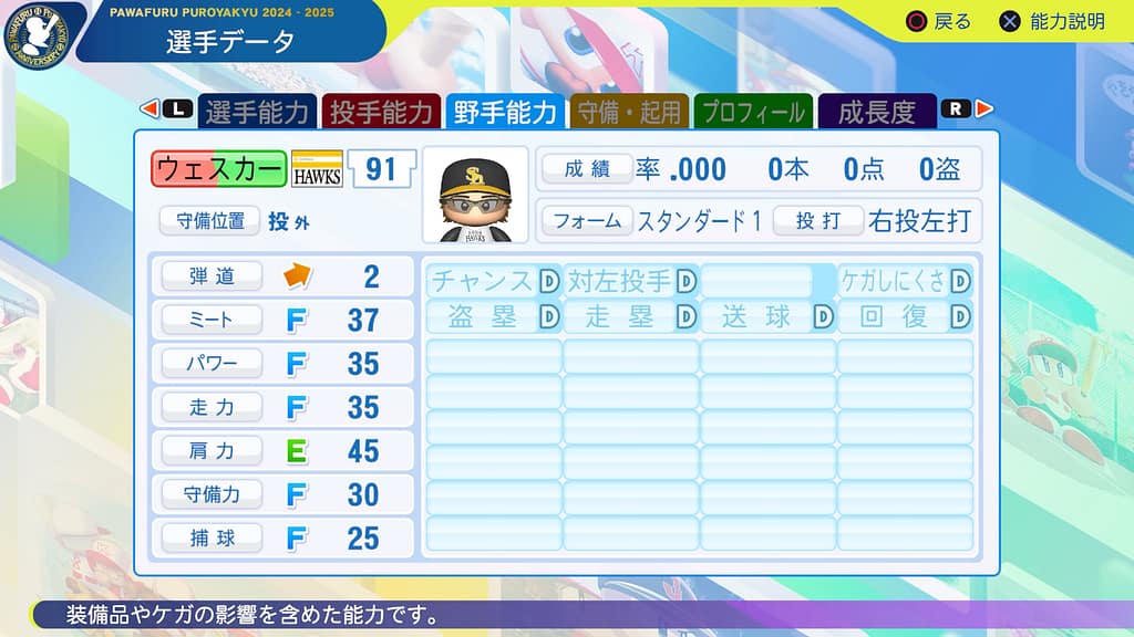 あとは走力がFだから、いきなりのトリプルスリーはキツそうだわ😂せめてDは欲しいところ!
