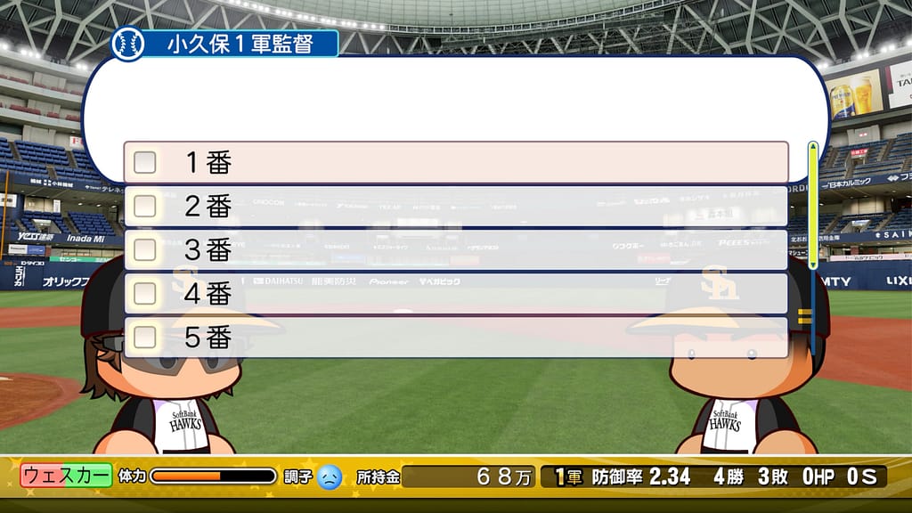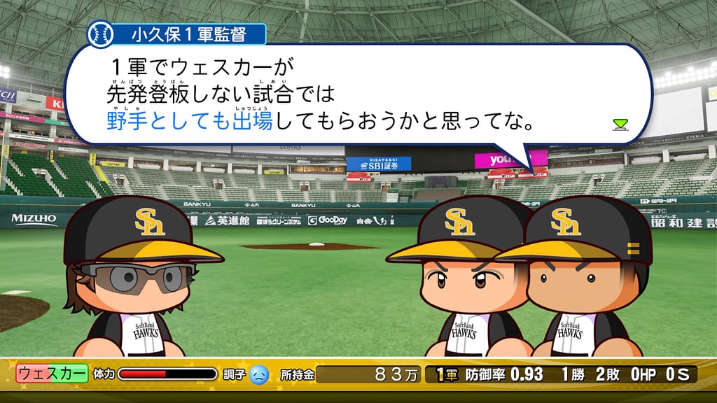 投手として活躍を続けていると、なんと小久保監督から「野手としても出場してもらおうかな」という提案を頂いたぞ!!!!!😳