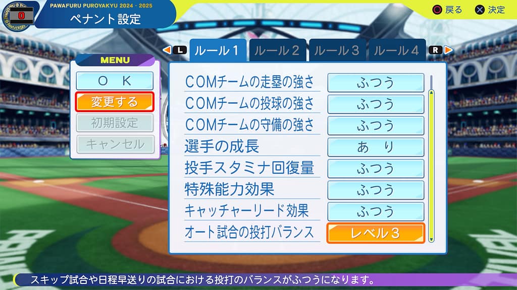ペナント設定にオート試合の投打バランスなんて項目があるな🤔こんなん前作にあったっけ???