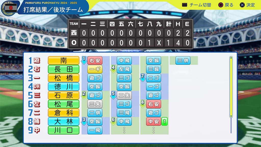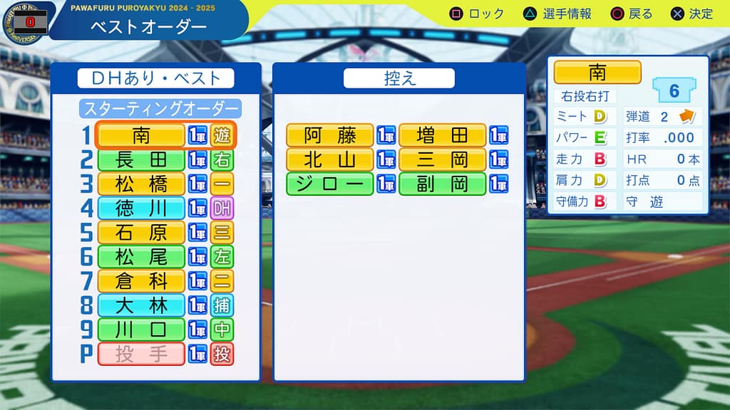 最初は最も打撃力のある松橋を2番に考えてたんだけど、とりあえず今回は日本のオーソドックスな感じの打順にしてみた。