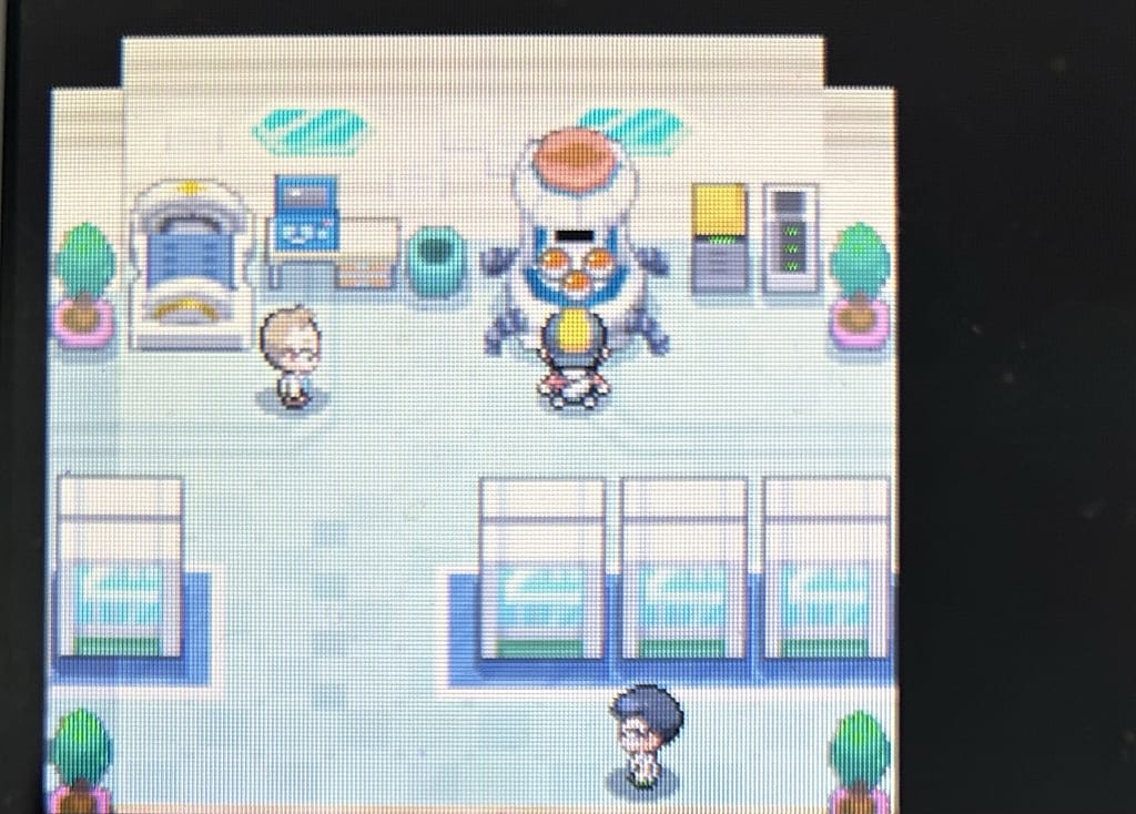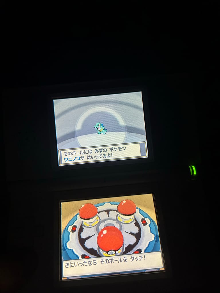 てことでゲームを最初から開始して、御三家を選ぶ機械の前に立ってレポートを書く。