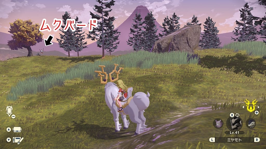 すると、オドシシが生息するエリアに到達するので、そこから少し先のちょっとした林の中から左の崖の方へ向かう。