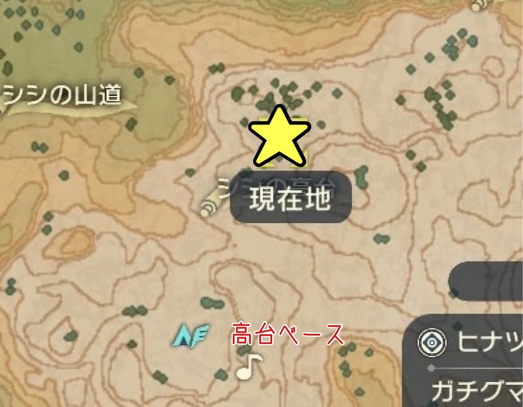 まず、ざっくりと出現場所を紹介すると、黒曜の原野の高台ベース北部の崖に出現する。