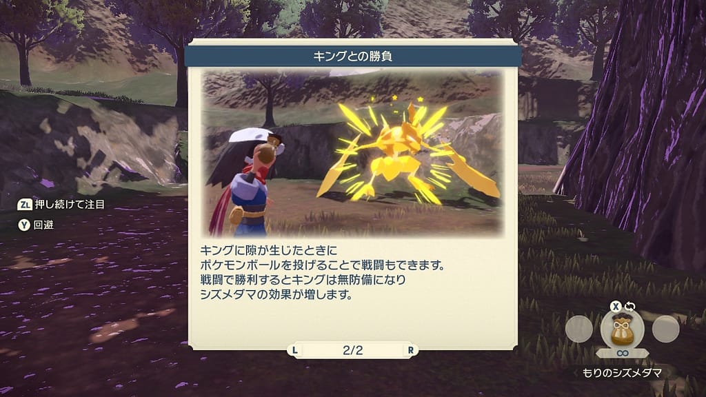 モンスターボールのようにシズメダマをキングに投げまくって、あらぶりゲージを0にすることができれば勝利らしいよ。