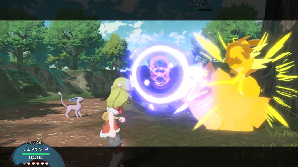 ポケモンバトルに勝利するとバサギリが気絶したので、シズメダマをひたすらに投げまくる!!!!