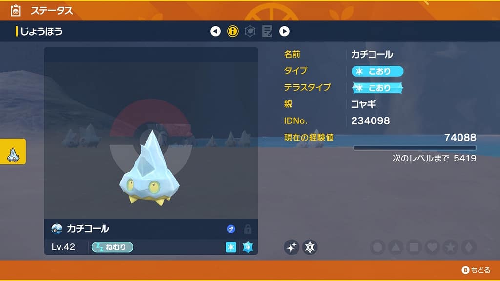 てことで既にカチコールは進化の条件を満たしているので、そのまま進化させちゃいまーす!😎