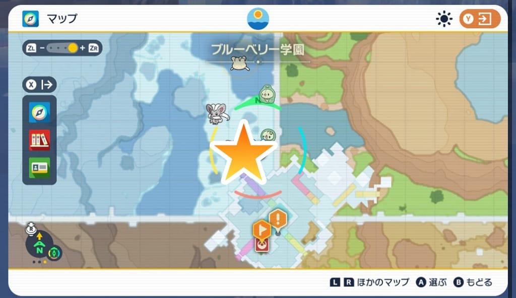 エリアの境目の壁を背にピクニックを開くと厳選が楽。ここに突っ立ってピクニックに開いて、遠くでわらわらと出現するチラーミィを目で追って行こう!