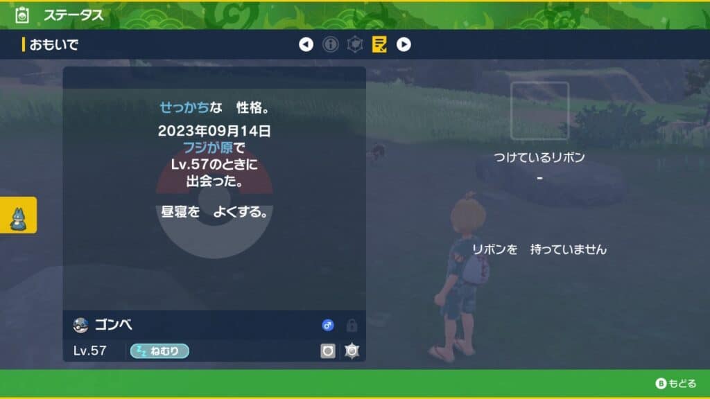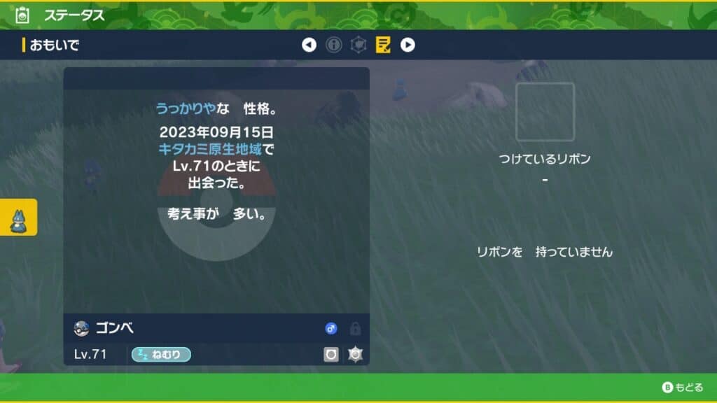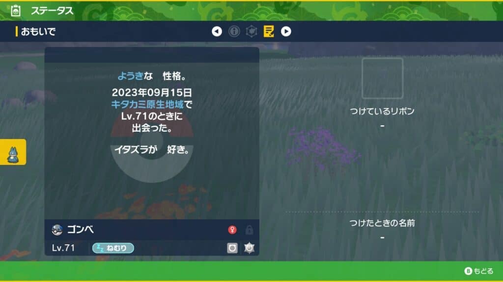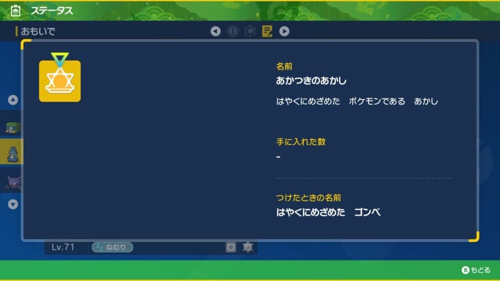 この『おもいで』の画面を見た時に、右下に『つけたときの名前』と表示されていると何らかの証が付いてるのである!!😳