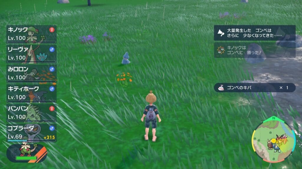ゴンベはここから南と北東エリアにも分布してるんだけど、南はワッカネズミが大量に出現し、北東はヨクバリスとイエッサンが大量に出現して邪魔だから、例のここが個人的にオススメ!!