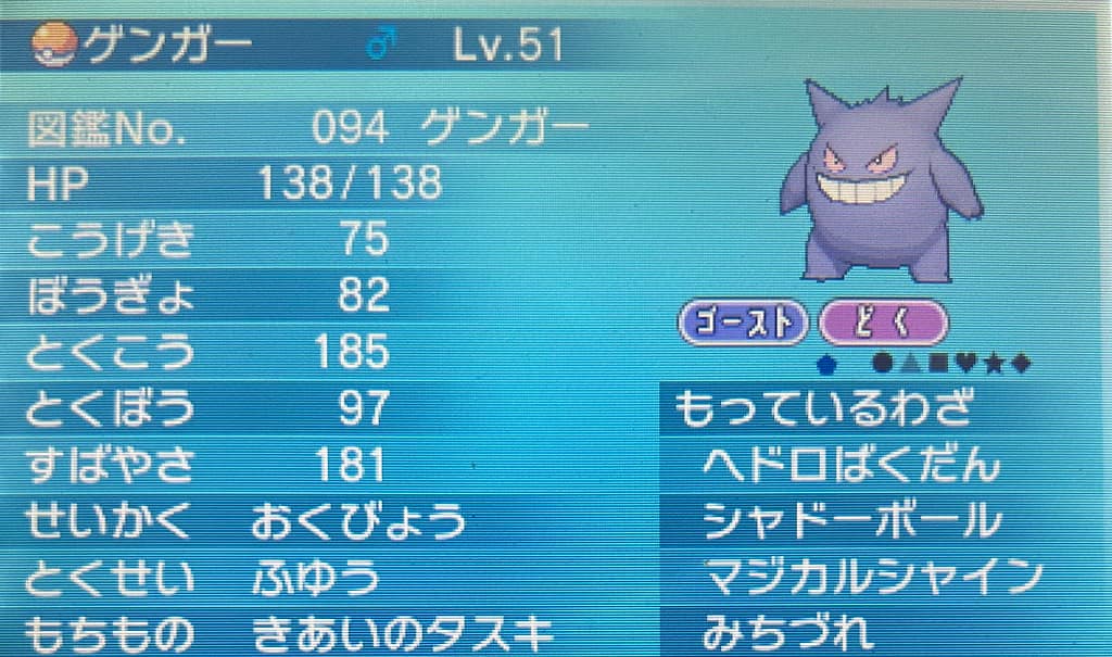 • 技:ヘドロばくだん/シャドーボール/マジカルシャイン/みちづれ