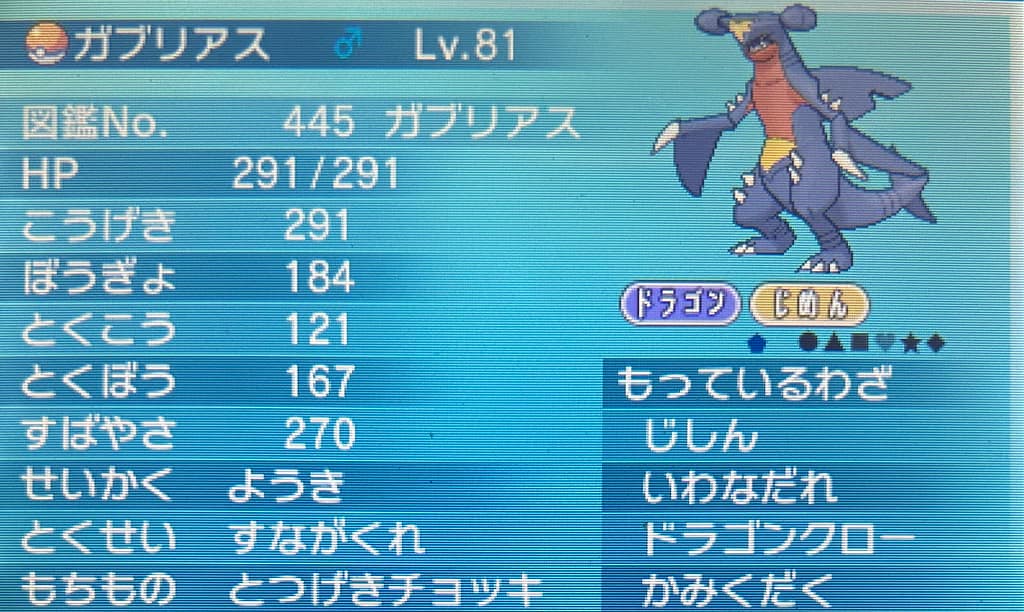 正直、メガガルーラが怪物、、、いや怪獣すぎるから錯覚してガブリアスの火力がイマイチに見えるけど、それでもポケモン界トップクラスの火力には違いないのが面白い。