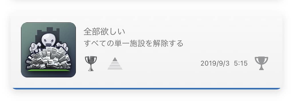 要するにこれはDLCを除くユニーク施設などを全てアンロックすることで獲得できるトロフィー。